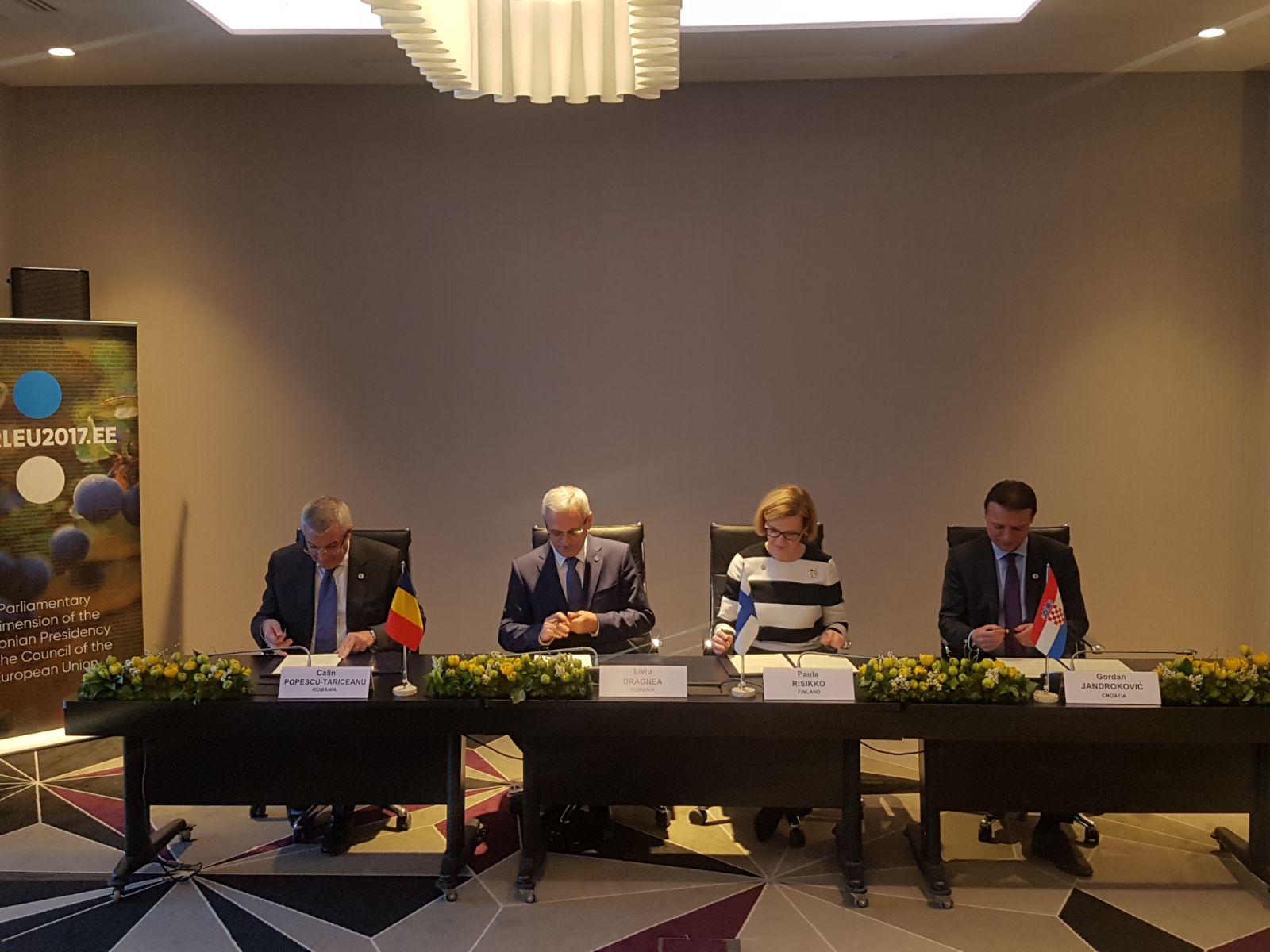 De asemenea, președinții celor două Camere ale Parlamentului României au semnat, împreună cu președinții Parlamentului Finlandei și Parlamentului Croației, Declarația de cooperare a viitorului Trio prezidențial al Consiliului UE. Aceasta cuprinde prevederi de substanță cu privire la facilitarea cooperării, comunicării și a schimburilor de bune practici atât la nivel politic, cât și la nivelul administrațiilor parlamentelor din cadrul Trio-ului.