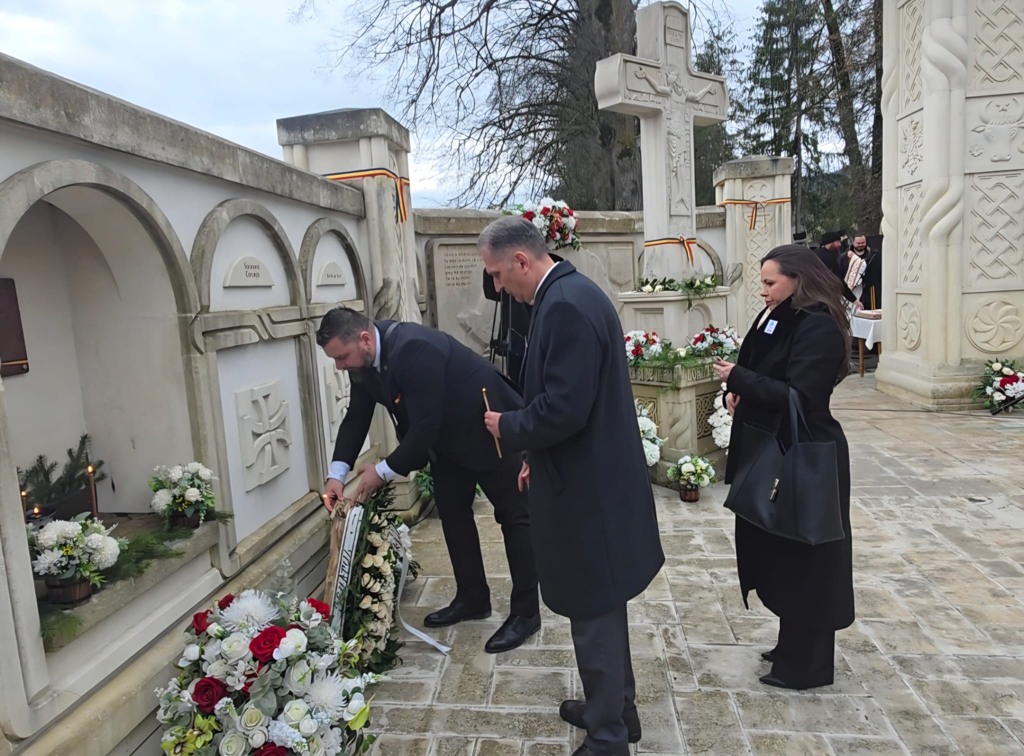 Programul comemorativ a continuat la Mănăstirea Putna, România, unde delegația a participat la o slujbă religioasă dedicată victimelor masacrului.